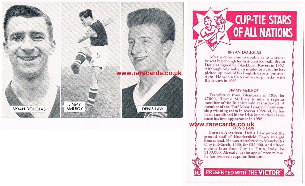 card code: Denis Law uncut triple 1962 cup tie stars all nations