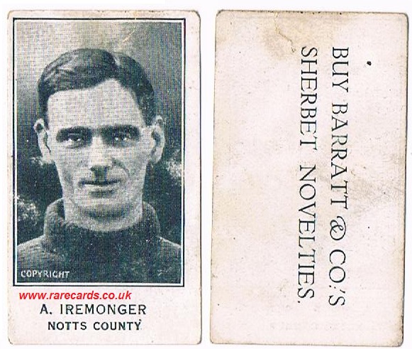 card code : Iremonger Notts County Barratt 1926