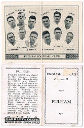 FULHAM shield-shaped football card printed by City Bakeries,