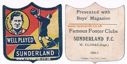 1922 footy trade card of a Sunderland
