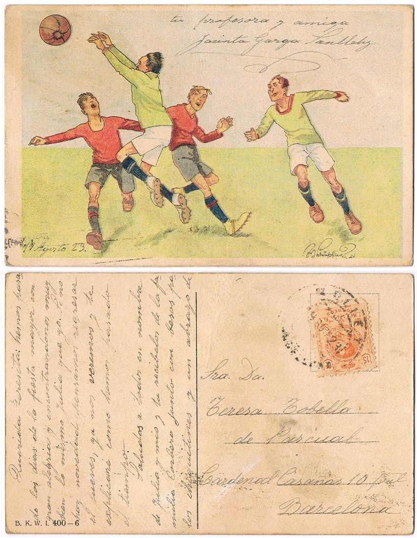 card code: postcard illus reds v greens action Spain 1923